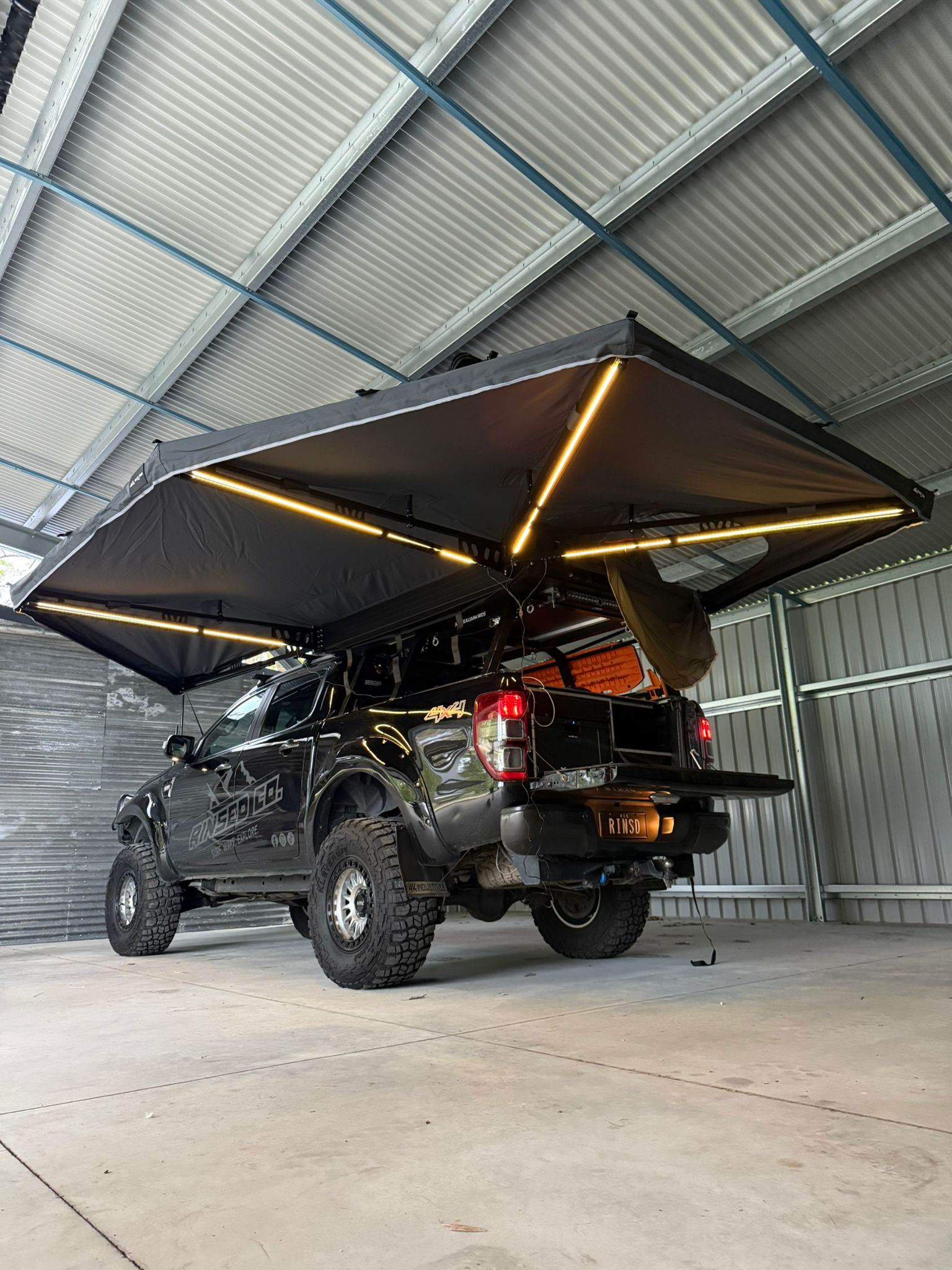 Engineered for Australia’s unpredictable weather, it provides wide-reaching coverage around your rooftop tent, shielding doors and windows from rain while still allowing airflow and ventilation. Made from tough, waterproof materials, the 270° design offers quick setup and dependable protection so you can relax in comfort through wind, rain, or shine. It’s the ultimate balance of durability, practicality, and all-weather peace of mind.
